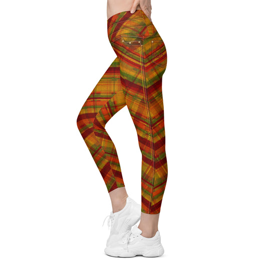 Fall Plaid Crossover Tights w/Pockets