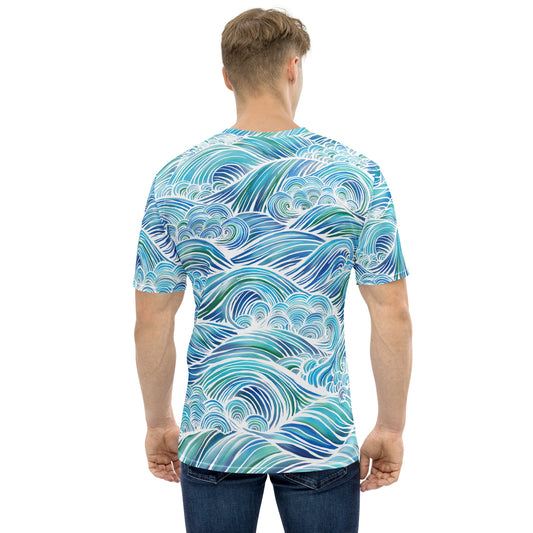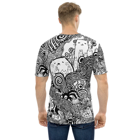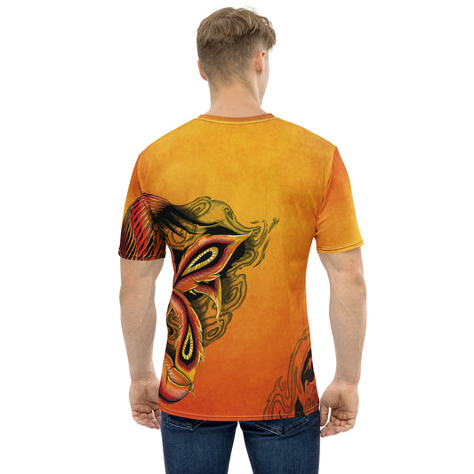 AOP or "All Over Print" T-Shirts are a labor intensive process to create. You have to design for each panel in the garment, print the art, apply the art to each panel and then finally sew it. As opposed to using a roll of printed fabric, this allows for much more control of the art placement. final look and mood of the piece.